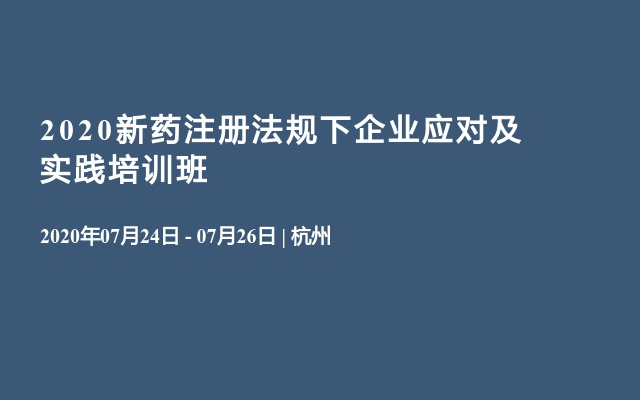 为此,本单位定于2020年 7月24日至26日在杭州市举办“2020新药注册法规下企业应对及实践培训班”,邀请业内权威专家针对相关问题进行深入解析。培训通知如下: