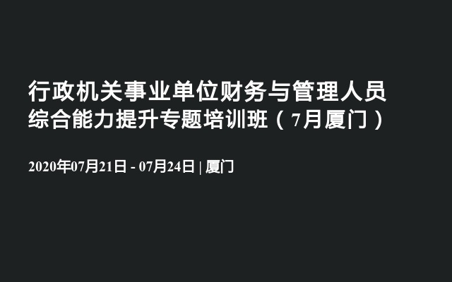 为进一步提升行政机关事业单位财务人员业务知识、技能及监管水平,熟练掌握内部控制报告编制及政府部门(综合)财务报表操作,并解决各单位在国有资产管理清查与账务处理等实施中遇到的诸多问题,中国人力资源开发研究会培训中心与北京中会联教育咨询有限公司决定于2020年7月、8月分别在厦门市、成都市举办“行政机关事业单位财务与管理人员综合能力提升”专题培训班,希望各单位积极组织相关人员参加。现将有关事宜通知如下: