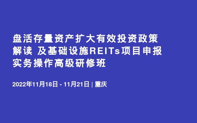 要稳住经济大盘,发展是解决一切问题的基础和关键。为此,国家将加大中央财政和地方政府专项债对基础设施建设的投入,提速盘活存量资产扩大有效投资,支持基础设施领域不动产投资信托基金(REITs)健康发展,引导平台公司做好特殊时期经济发展的领头羊,推动政府与社会资本合作(PPP)模式健康发展,有效撬动社会投资。鉴此,我集团决定举办“盘活存量资产扩大有效投资政策解读及基础设施REITs项目申报实务操作高级研修班”。现将有关事项通知如下: